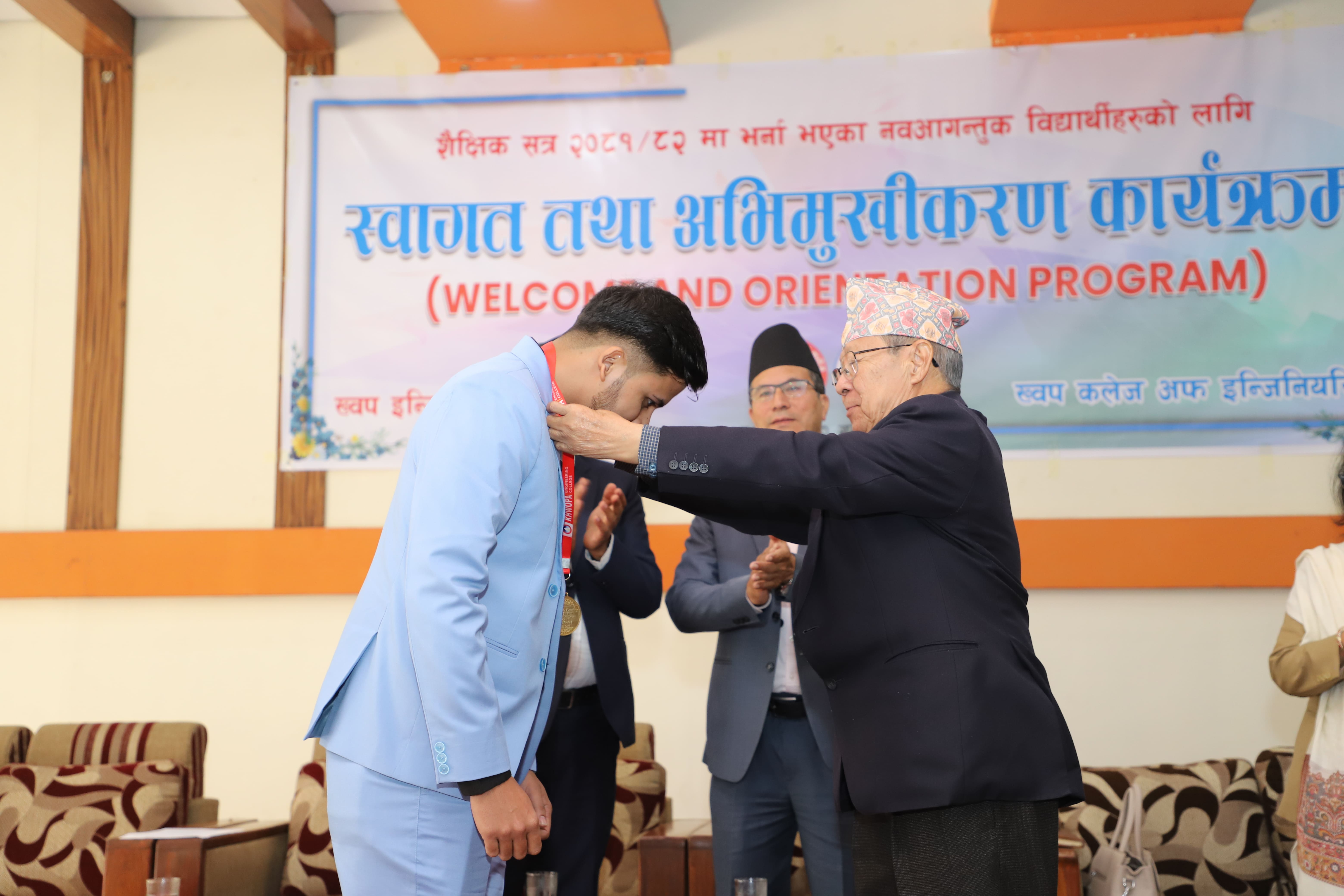 Er. Vikas Pandey, who was admitted to Khwopa Engineering College in the academic session of 2075, was honored for his outstanding performance in the 2081 examination of Purvanchal University. He received the prestigious Dr. Ram Shobhana Pokharel Gold Medal from Purbanchal University and was further honored with a Gold Medal and a cash prize, presented by the chief guest in recognition of his academic excellence.