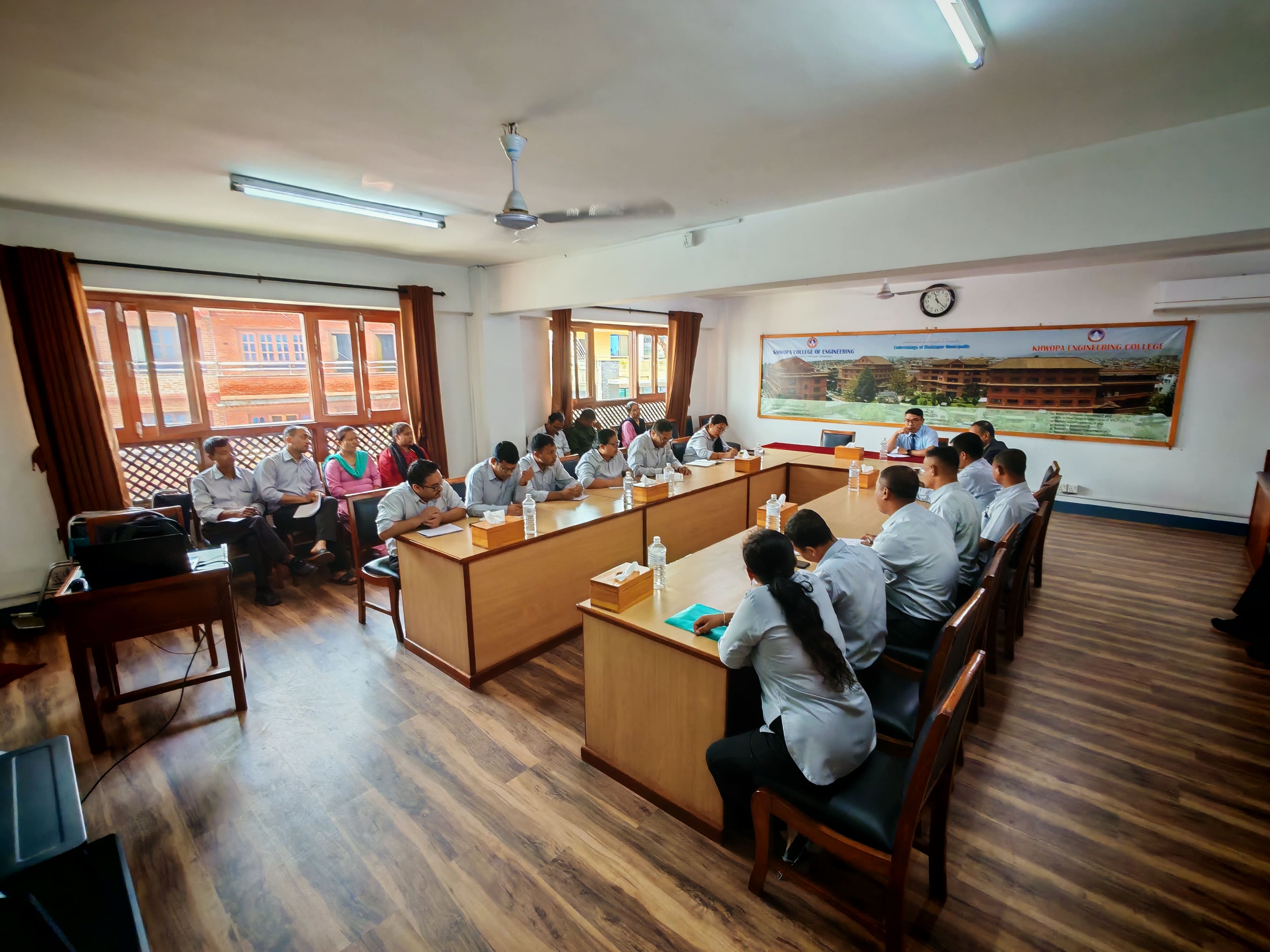 Bhaktapur, Jestha 27, 2082 – A staff meeting of Khwopa College of Engineering was held on Tuesday at the college’s meeting room, focusing on discussions about daily work activities, challenges encountered, and ways to enhance institutional efficiency.