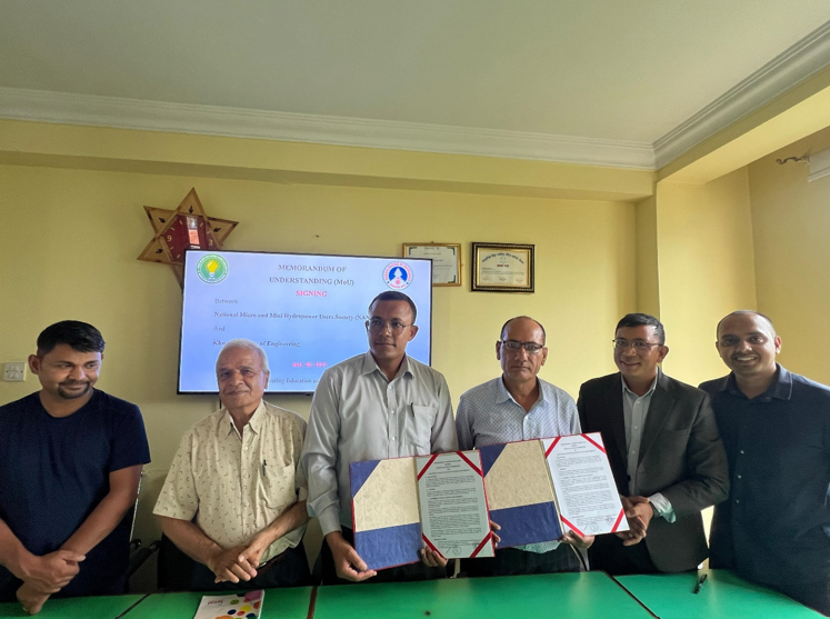 The formal signing ceremony was graced by key representatives from all participating institutions. Er. Ramesh Bala, Coordinator, Placement Cell and Er. Rakesh Gwachha, Head of Department, Electrical Engineering from Khwopa College of Engineering and Mr. Dilli Ghimire, Managing Director, Nepal Energy Foundation and Mr. Narayan Dhoj Khadka, Chairperson, National Micro and Mini Hydropower Users’ Society Nepal were the participants. Their presence and commitment to collaboration reflect a shared vision for empowering future engineers and advancing community-level energy solutions in Nepal.