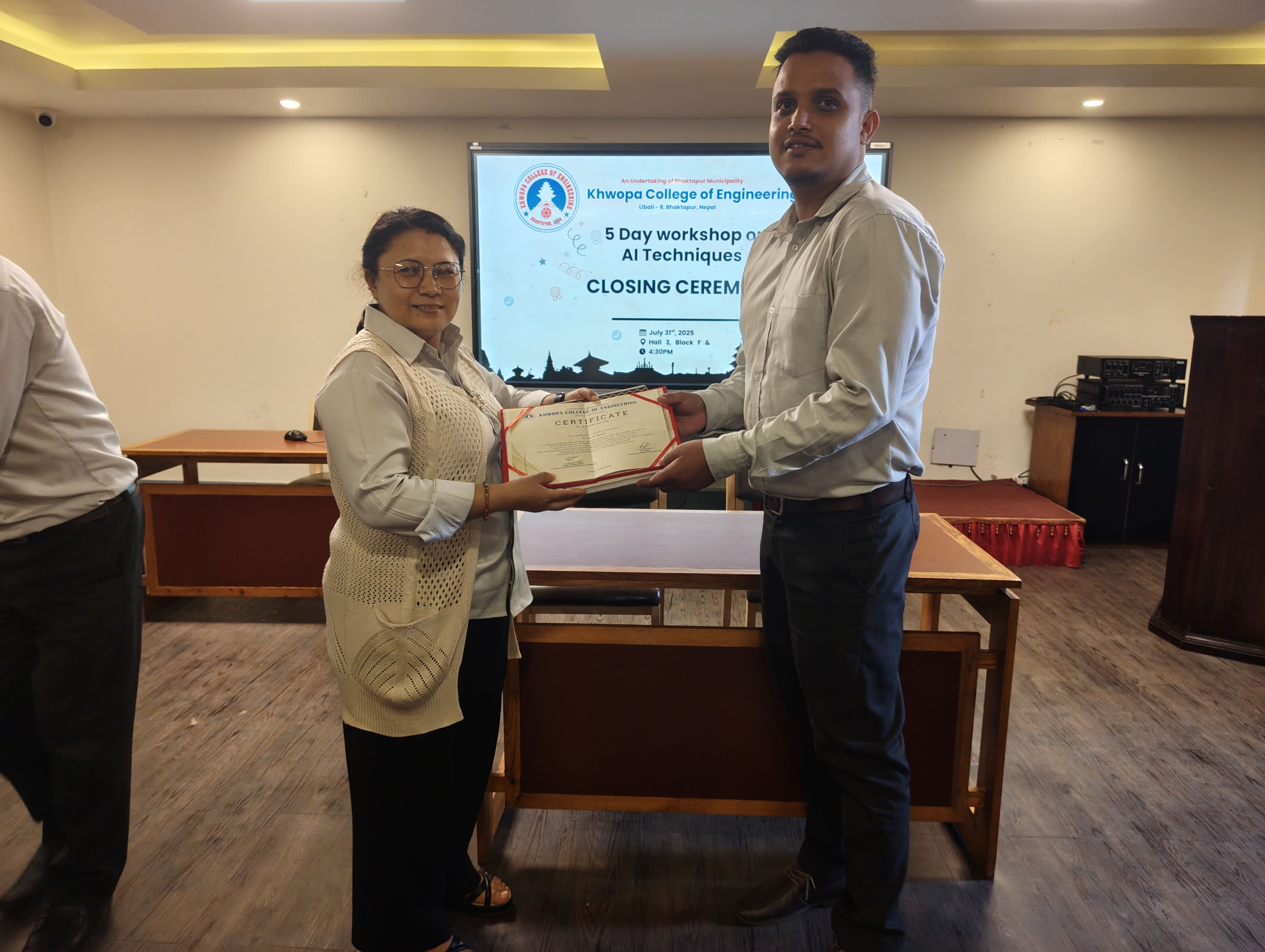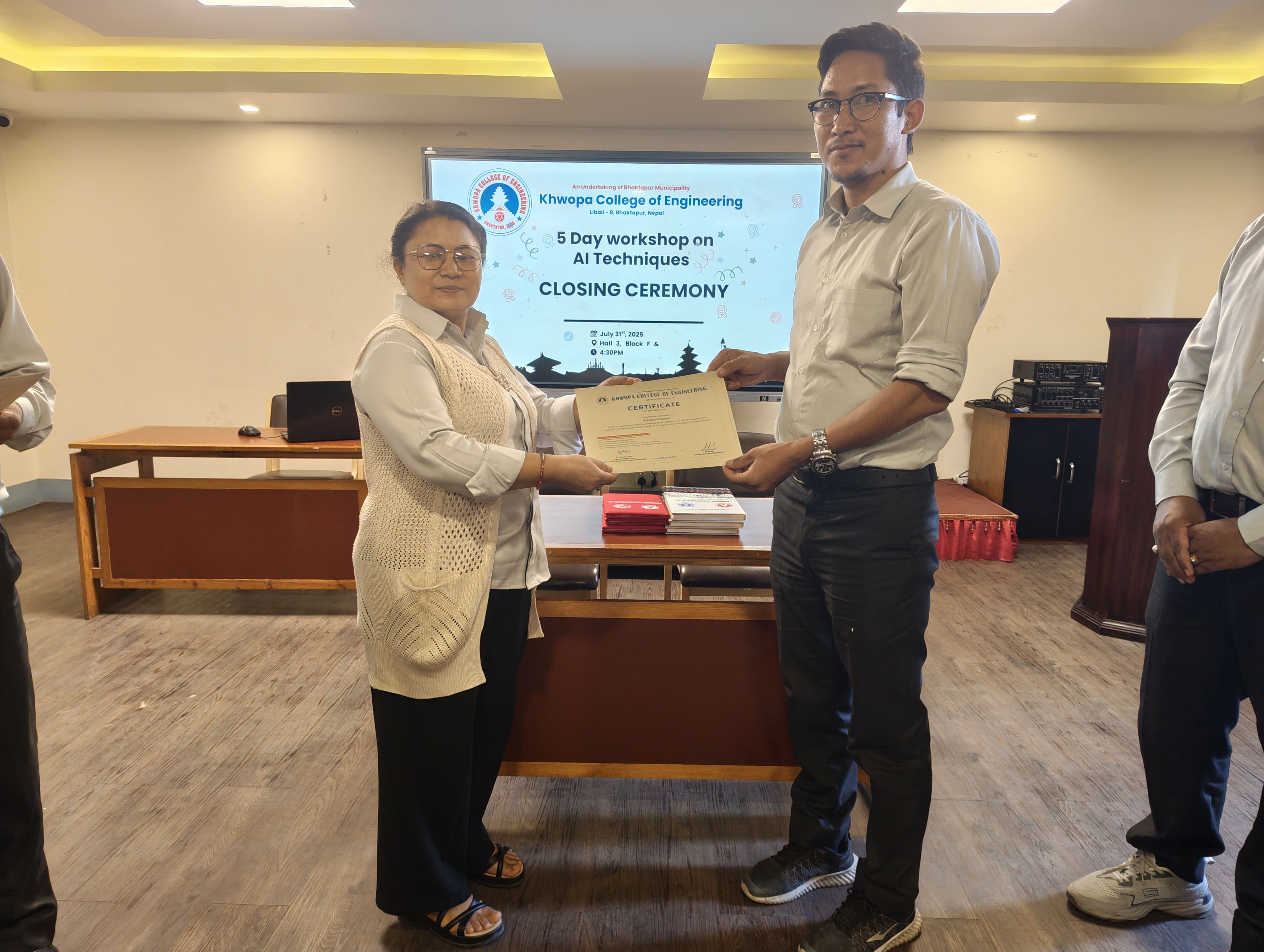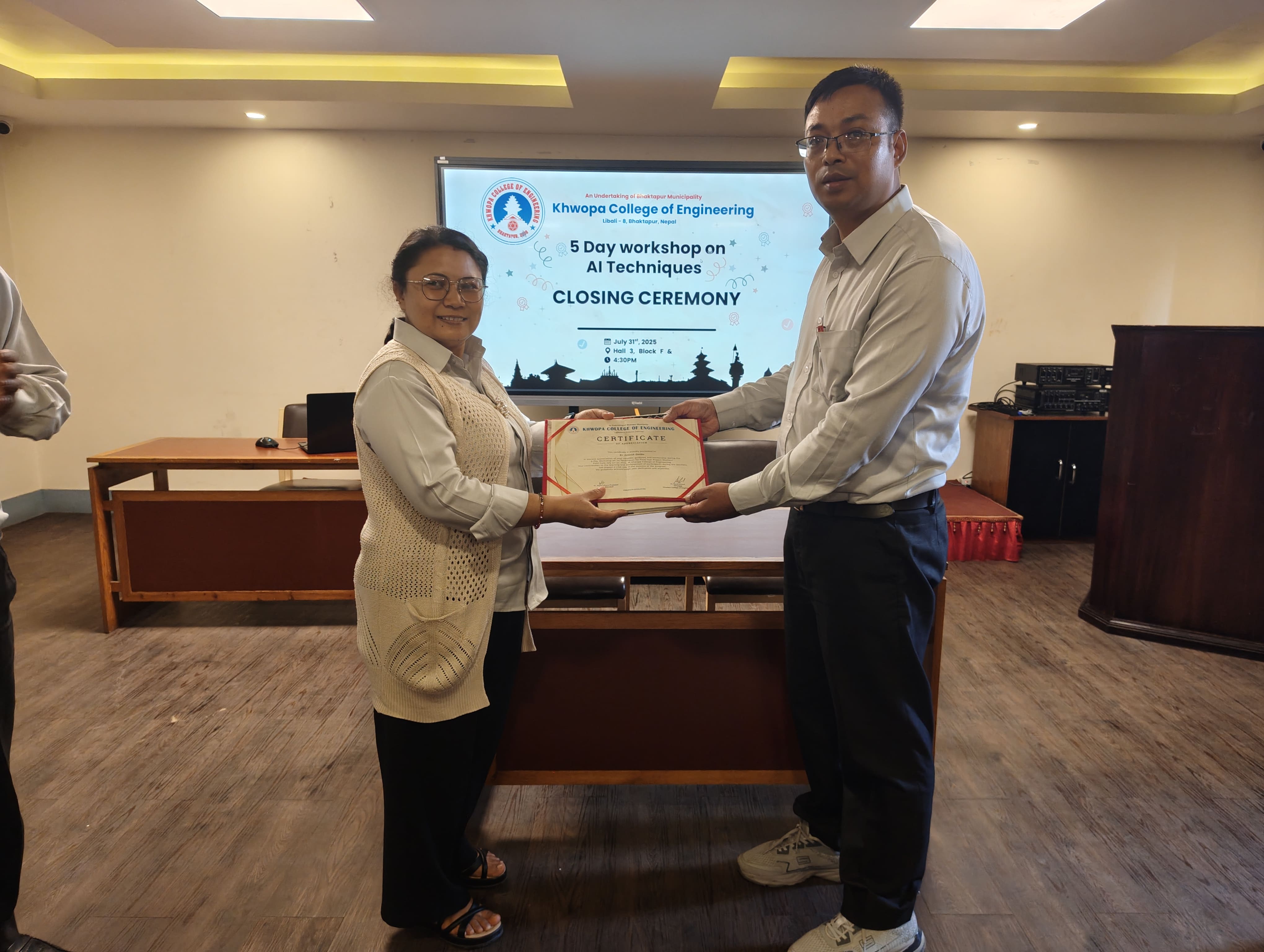 Khwopa College of Engineering's Department of Electronics and Computer Engineering recently hosted a five-day faculty development workshop titled "AI Techniques for Final Year Project Mentors" to equip faculty with essential AI knowledge for mentoring student projects.
