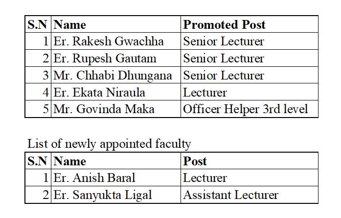 As the Chief Guest, Mr. Sunil Prajapati distributed appointment letters and promotion letters to senior Lecturers, Lecturers, and non-teaching staff members by the college's regulations. List of promoted staff and faculty